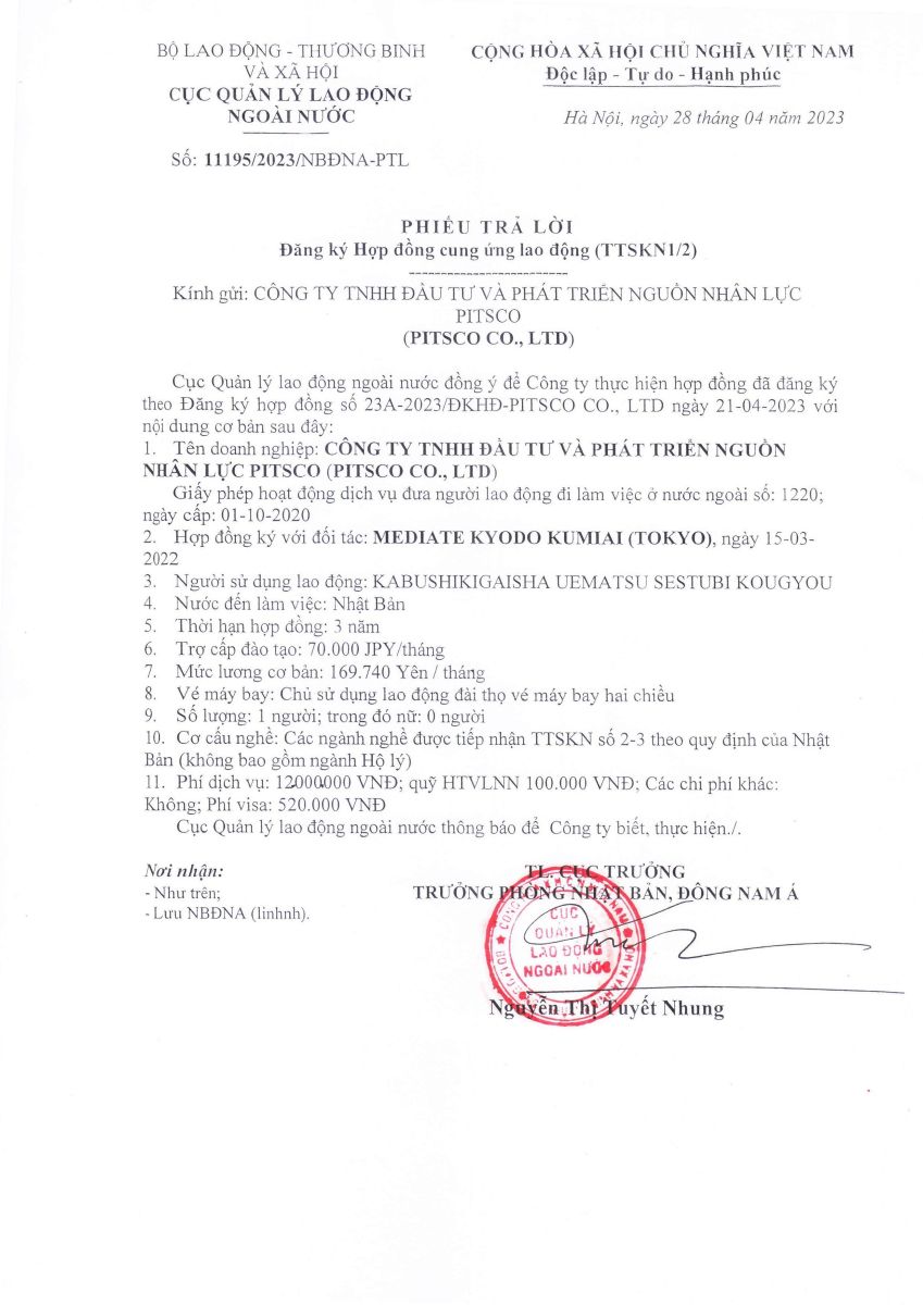 Phiếu trả lời số 11195/2023/NBDNA-PTL ngày 28/04/2023 Nghiệp đoàn MEDIATE